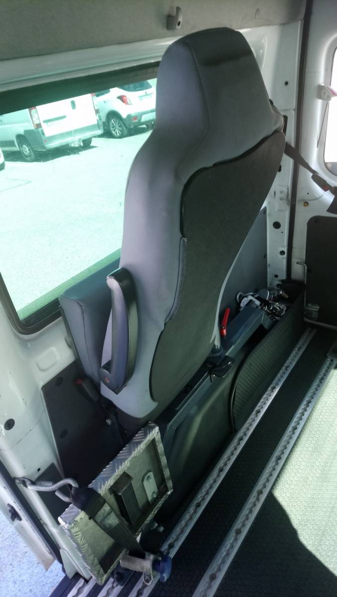 Le véhicule (7 places CG) est aménégé pour un, deux ou 3 fauteuils roulants, il peut être en configuration 3 fauteuils + 4 places assises ou 2 fauteuils + 5 places assises.