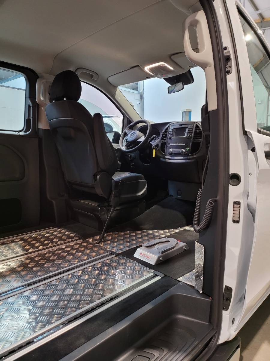 Cette installation pour personne à mobilité réduite se réalise sur les véhicules de types Mercedes Vito classe V ou Sprinter, sur du Volkswagen Multivan ou sur Renault Trafic ou Master.