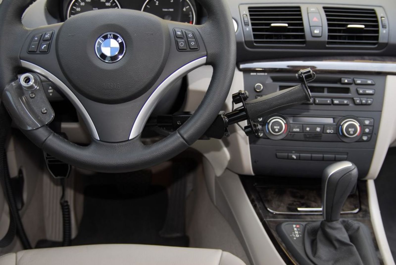 Cet aménagement est souvent combiné avec une boule au volant avec télécommande multifonctions permettant d'activer les clignotants, l'éclairage des feux et le klaxon.