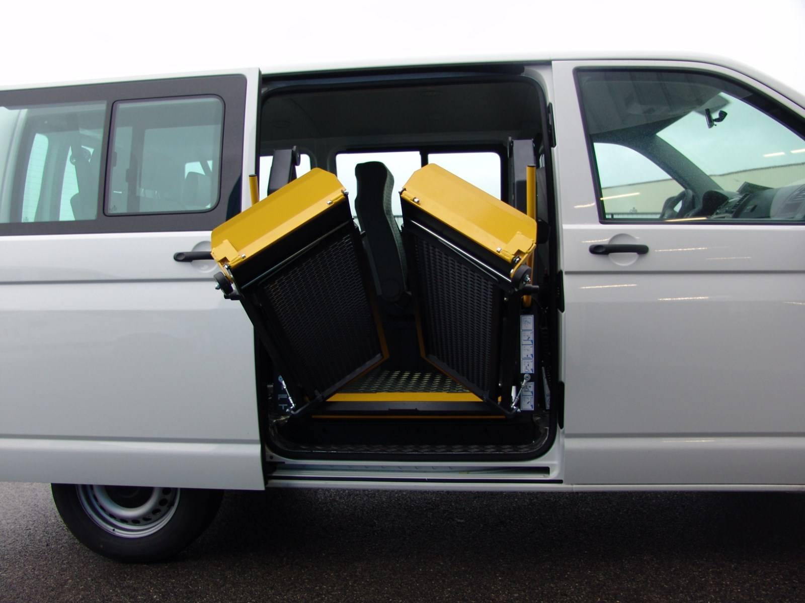 Parmi les différentes plateformes élévatrices, cette dernière une fois repliée horizontalement en 2 parties occupe un minimum d'espace, ce qui offre une visibilité maximale et le passage est entièrement libre que ce soit avec un montage sur la porte latérale ou à l'arrière du véhicule.