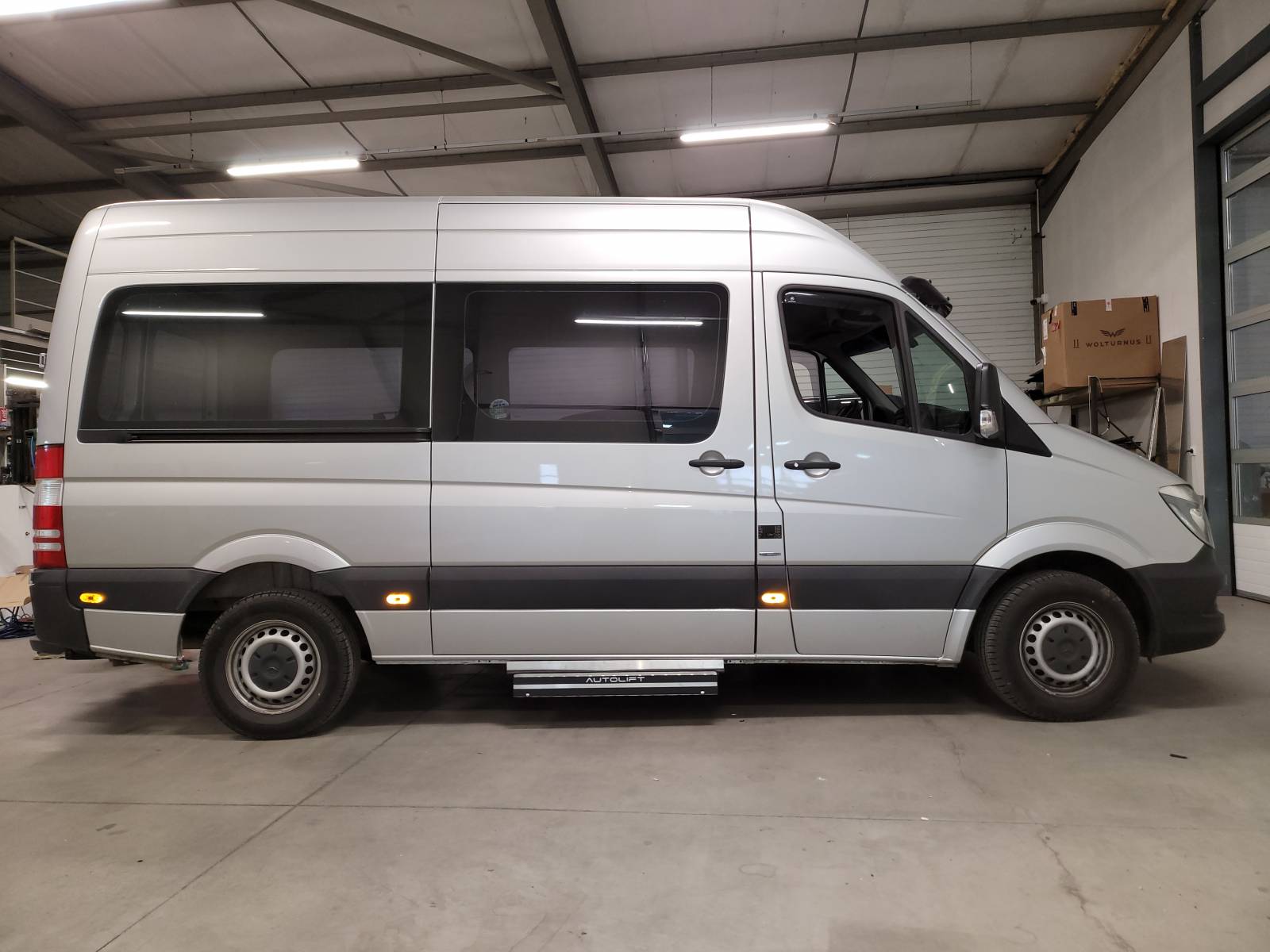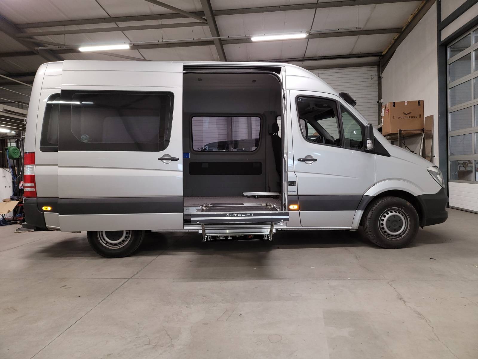 Afin de vous faciliter l'accès à l'intérieur de votre véhicule de type "grands porteurs" (sur des véhicules où le hayon F6 habituellement installé est insuffisant) tel que le MERCEDES Sprinter, Volkswagen Crafter ou RENAULT Master, nous pouvons vous installer le hayon sous plancher, modèle de notre fournisseur Italien AUTOLIFT F900.