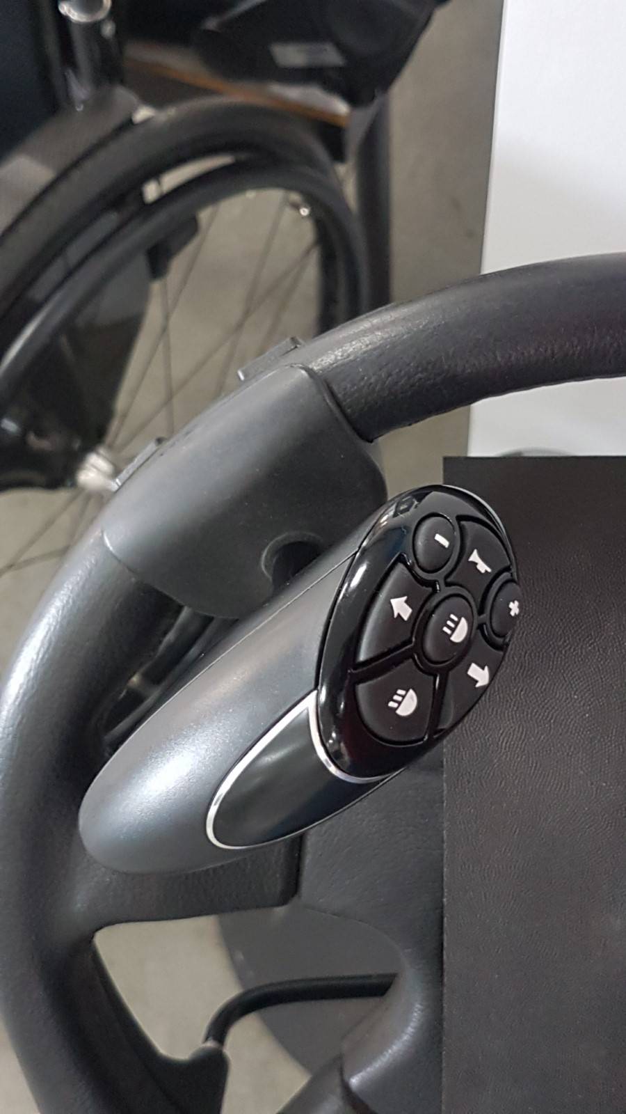 La boule télécommande LEHMDIS centralise les commandes du véhicule, permettant d'accéder d'une seule main à la direction et aux fonctions essentielles :
