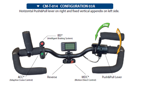 Configuration pour personne Tétraplégique possible (voir exemple en photo, 14 configurations possible) Le Triride est réellement personnalisable selon vos besoins !